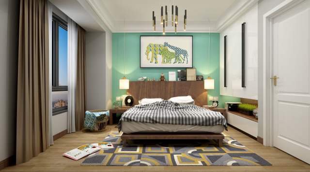 一款比較小清新的臥室裝修,整個臥室裝修以簡單清新的設(shè)計為主題,所以在背景墻顏色的選擇上就偏向了明亮清雅的顏色,墻上搭配的設(shè)計也是相當?shù)牟诲e的。