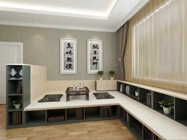 如果你家的飄窗面積足夠大。采光、通風(fēng)、視野都很好,那你可以把飄窗設(shè)計(jì)成一個(gè)多功能的休閑區(qū)。這樣的飄窗相對來說比較普遍,客人來了可以坐在著喝喝茶聊聊天,視野寬闊,生活雅致而又韻味。