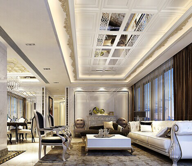 凹凸式吊頂是指表面具有凹入或凸出構(gòu)造處理的一種吊頂形式,這種吊頂造型復(fù)雜富于變化、層資感強(qiáng)、適用于廳、門(mén)廳、餐廳、等頂面裝飾。它常常與燈具(吊燈、吸頂燈、筒燈、射燈等)搭接使用。
