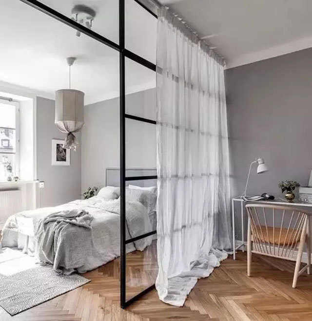 還有一種竹編的屏風(fēng)現(xiàn)在也很流行,放在床前,可以在臥室里再隔出一個看書的區(qū)域。
