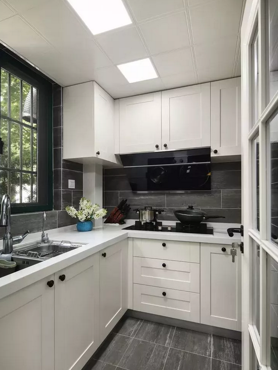 廚房吊頂結(jié)束之后再安裝櫥柜,吊頂安裝結(jié)束后廚房的高度才真正確定下來,可以根據(jù)總的高度適當(dāng)調(diào)節(jié)吊柜的高度,兼顧吊柜使用的便利性和整體美觀;