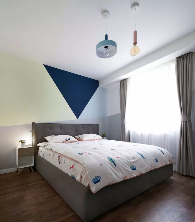 次臥室也是將來的兒童房,格局可能會在一段時間之后發(fā)生變化,所以設(shè)計電源的位置時,要滿足兩種不同布置狀態(tài)的使用需求。