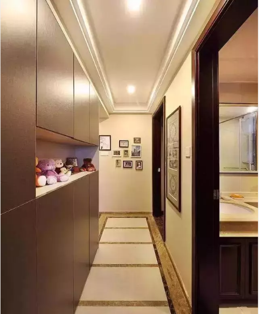除了裝飾作用之外,走廊最重要是發(fā)揮實(shí)用性。其中,最常見的作用就是收納。無論是鞋子、衣物、書籍等,只有你想不到,沒有走廊收納做不到的。