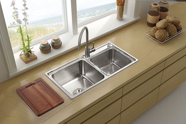 清理臺面時菜??ㄔ诹瞬伺柽吘?,廚余垃圾堵住了下水口,洗菜時水花四濺。廚房是家務(wù)最多最亂的地方,這些看似習(xí)以為常的問題其實并不是不能解決的,水槽選擇好問題就能解決一大半。那水槽該選擇什么樣的比較好呢?我覺得還是雙槽好,鍋碗瓢盆分的開,洗菜、洗碗兩不誤。