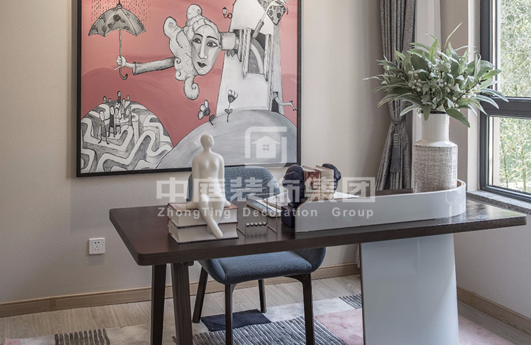 書房的書桌最好靠近窗邊。為避免閱讀造成眼睛疲勞,可考慮采用色度較接近柔和晨光的、不閃爍穩(wěn)定的燈具,以減輕視覺負(fù)擔(dān)。