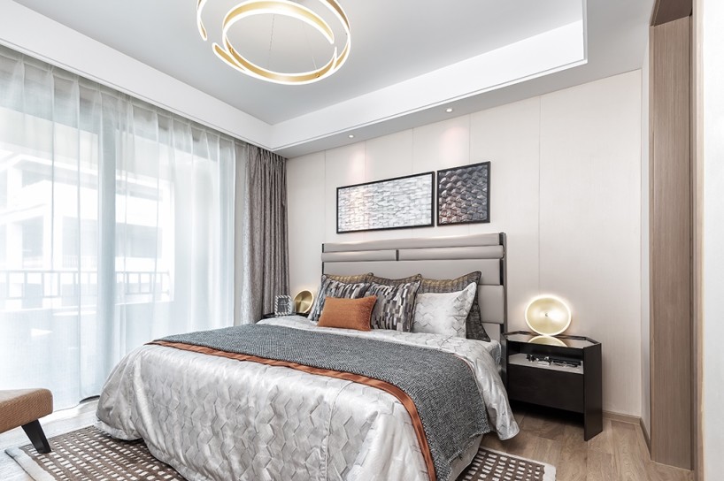 主人的臥室延續(xù)了簡約的基調(diào),沒有過多的裝飾和繁復(fù)的設(shè)計,遮光窗簾為臥室提供了私密的環(huán)境,給主人創(chuàng)造了一個安眠的好環(huán)境。