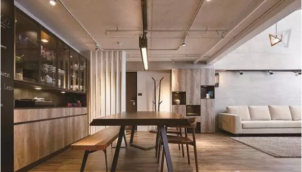 設(shè)計(jì)者將餐廳經(jīng)過重新配置,拉大了使用尺度,同時(shí)也能滿足男屋主愛下廚,能經(jīng)常邀請(qǐng)三五好友到家中做客、享受料理的需求。除了大尺度的餐廳、餐桌之外,同時(shí)也規(guī)劃了一座大面的餐具展示柜,一改過去將杯盤拾起的概念,而是將這些具鮮明色彩、特殊造型的杯盤一一展現(xiàn)出來,不僅輕松完成收納,家的生活感表露無遺。
