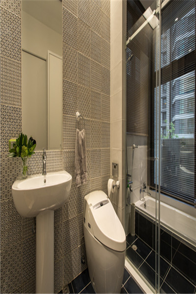 一般來(lái)說(shuō),浴室里頭50%的濕氣來(lái)自于地面,透過(guò)入墻手法的浴柜設(shè)計(jì),能夠避免底部直接吸潮的問(wèn)題,同時(shí)利用到最大限度的空間坪效。