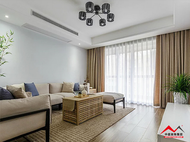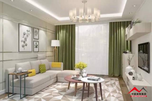 b、窗簾跟著次色調(diào)走是最安全的選擇,不一定要完全一致,只要顏色呼應(yīng)。比如選擇窗簾就可以考慮地毯或者茶幾桌布的顏色,在挑選的時(shí)候可以接近其顏色,整個空間就相得益彰。