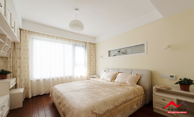c、臥室的床品也是一個很好的參照物,歐式風(fēng)格的床品搭配歐式的窗簾。比如上圖,窗簾以米色花卉與淺咖色葉子相間,與織花床品完美融合。