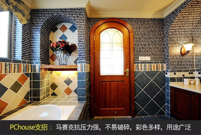 馬賽克瓷磚是地面和墻面裝飾使用較多的裝飾建材之一。馬賽克具有精致小巧、色澤多樣,可用來(lái)拼出各種美觀的圖案,對(duì)于墻面和地面的裝飾效果遠(yuǎn)遠(yuǎn)的超過(guò)了普通的墻磚和地磚。馬賽克種類繁多,規(guī)格多,薄而小,質(zhì)地堅(jiān)硬,耐酸、耐堿、耐磨、不滲水,抗壓力強(qiáng),不易破碎,彩色多樣,用途廣泛。