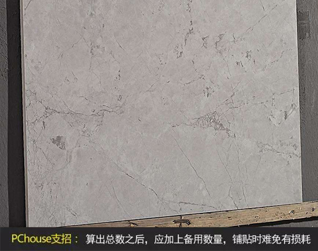 瓷磚可以論塊出售,或者按平方米出售,在購(gòu)買瓷磚前應(yīng)計(jì)算要鋪貼的面積。有的圖表只要知道貼瓷磚墻面的高度和寬度,即可查出瓷磚用量。有的瓷磚包裝箱上也會(huì)列明一箱瓷磚可鋪貼多大面積。粗略計(jì)算起來(lái),80平方米的面積可按640塊約14厘米見(jiàn)方的瓷磚或320塊20厘米見(jiàn)方的瓷磚計(jì)算。算出總數(shù)之后,應(yīng)加上一定的備用數(shù)量,因?yàn)殇佡N時(shí)難免有損耗。也可以利用這個(gè)公式大致算出所需要的瓷磚量:(裝飾面積÷每塊瓷磚面積)×(1+3%),就是施工時(shí)所需瓷磚塊數(shù),其中3%是施工損耗量。