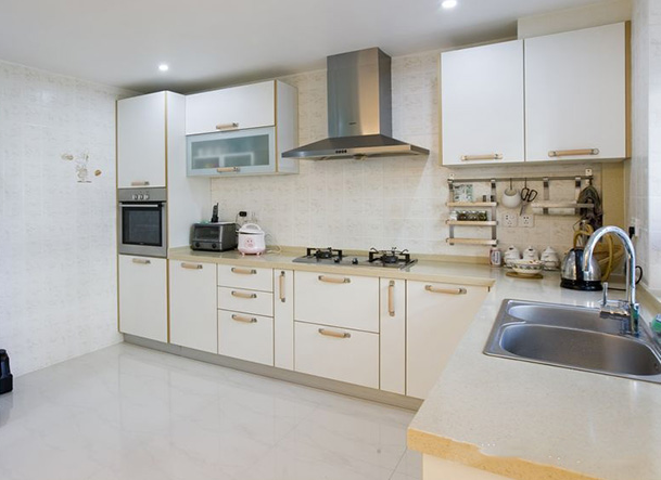 1、首先應(yīng)考慮烹飪區(qū)的功能及實(shí)用性,比方說長(zhǎng)條形的布局,適宜采用L型的柜體,同時(shí)還可加大儲(chǔ)物功能,頂柜用玻璃柜門,增強(qiáng)小廚房的通透性,另外在配色上,切忌花花綠綠,尤其是不能使用應(yīng)有立體圖案的裝飾材料,否則會(huì)讓整體面積顯得更為狹小,還不易清潔。