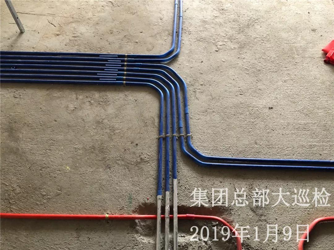 水電線管鋪設(shè)橫平豎直,管和管之間留有足夠縫隙,以便鋪設(shè)地磚時水泥砂漿進(jìn)入管下,防止地磚后期出現(xiàn)空鼓。強(qiáng)弱電交匯處做錫紙包裹保護(hù)。