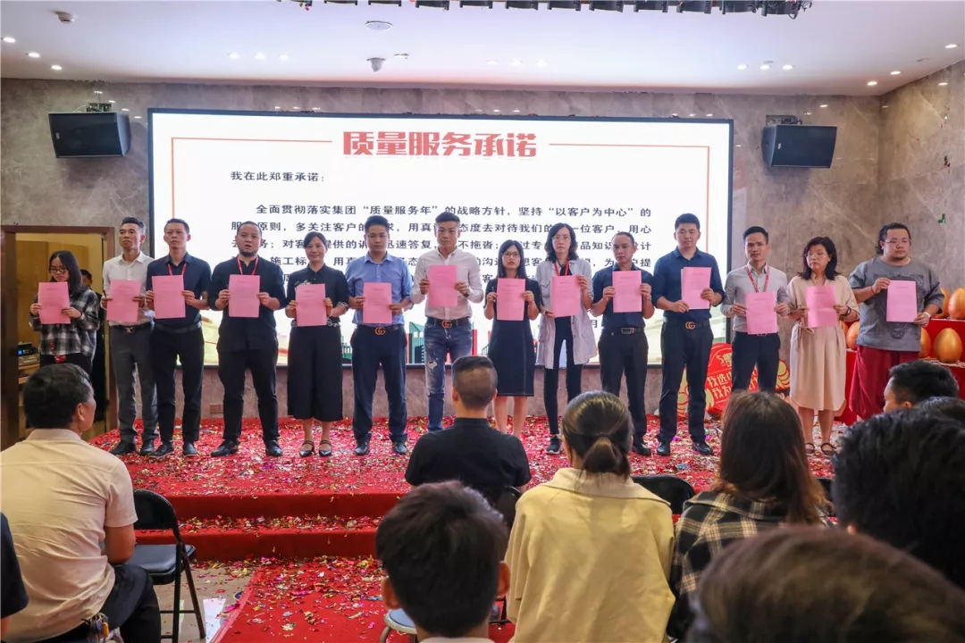 以客戶為中心,為貫徹集團“質(zhì)量服務(wù)年”方針,持續(xù)提升工地質(zhì)量,加強各部門服務(wù)意識,打造服務(wù)品牌,為客戶提供更專業(yè)、優(yōu)質(zhì)、熱情周到的服務(wù)。集團在5月份隆重開展優(yōu)質(zhì)服務(wù)月活動,并于5月5日晚上在集團總部舉行活動啟動儀式。