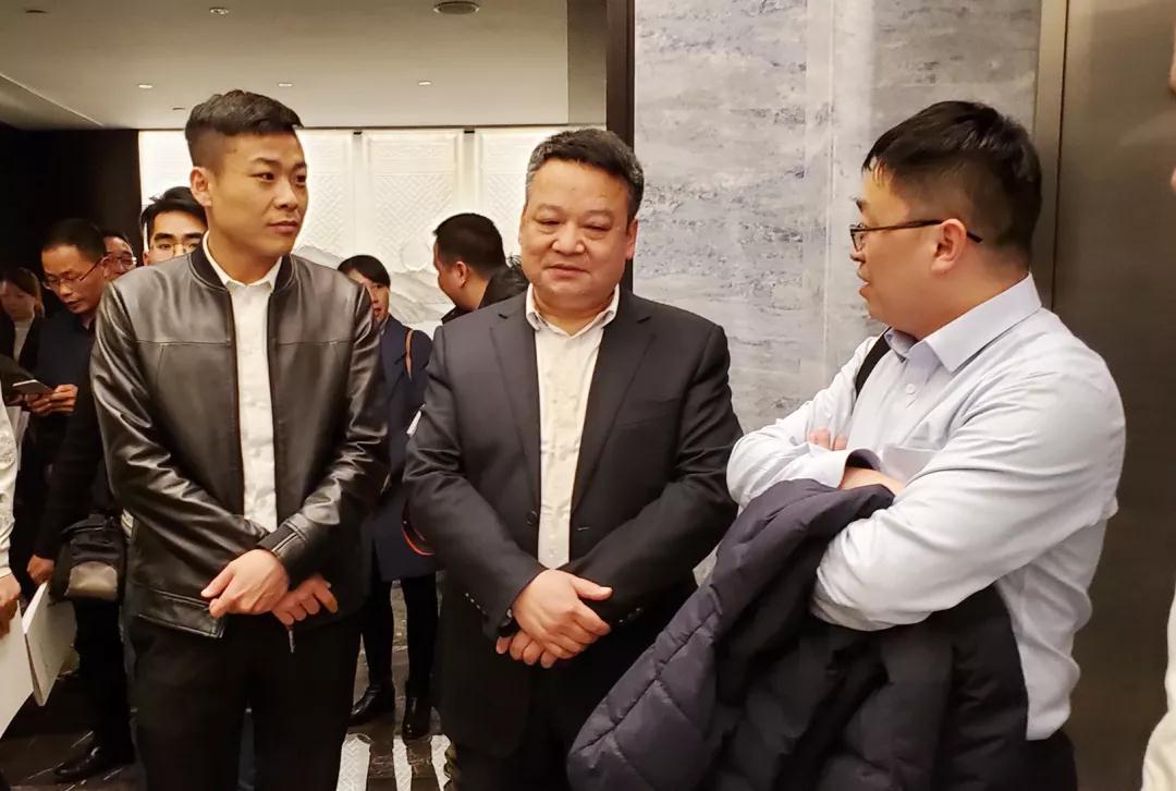 ▲會(huì)議間隙,丁胡總裁與亞廈董事長(zhǎng)丁海富、浙江裝協(xié)副秘書長(zhǎng)袁海泉交流
