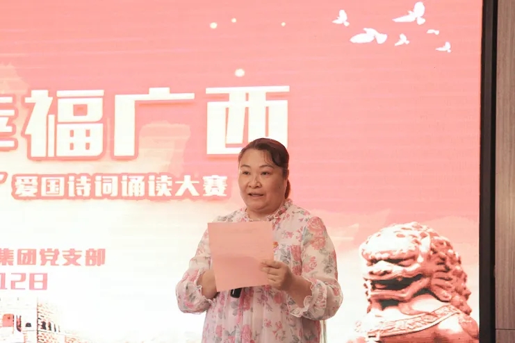 6月12日,在“七一建黨節(jié)”來臨之際,由浦社區(qū)黨委主辦、中庭裝飾集團黨支部協(xié)辦的“全面小康 幸福廣西”愛國詩詞誦讀大賽在集團二樓大廳成功舉辦。南寧市稅務局機關(guān)黨委、廣西海事局機關(guān)黨委、招商銀行金浦路支行黨支部、竹溪社區(qū)衛(wèi)生服務中心黨支部、廣西金孟錳業(yè)有限公司黨支部、同方知網(wǎng)黨支部、中庭裝飾集團黨支部、北京外企人力資源黨支部、金浦社區(qū)轄區(qū)各級黨組織參加了本次活動。