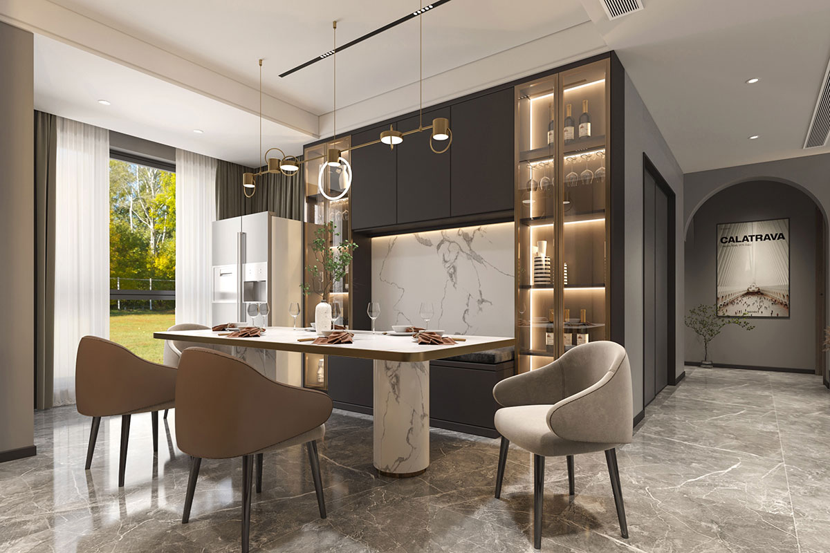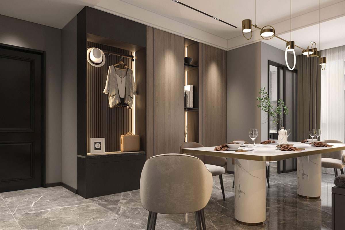 瀏覽量:500本案總面積為136m2,設計師整體色彩上采用“黑白灰”基調,局部輔以調色,空間沉穩(wěn)靈動跳躍。本案以現代風格輕巧內飾,低飽和度色彩點綴空間,形成輕松舒適的氛圍同時也不乏低調內斂的腔調,再加上富有質感的輕奢家居,獨一無二的理念和獨特視覺呼之欲出。