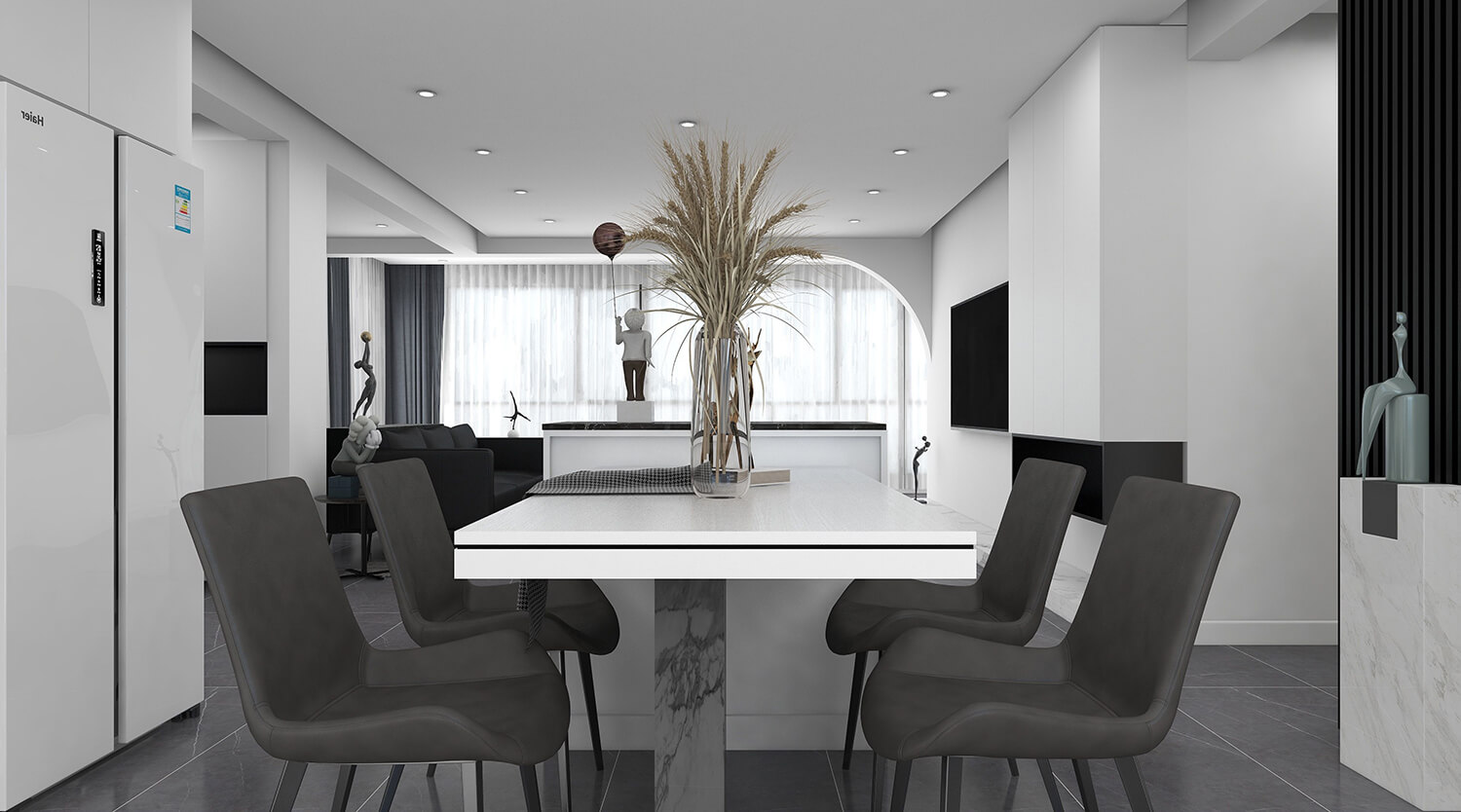 瀏覽量:375本案總面積為120㎡。設(shè)計(jì)師秉承簡(jiǎn)潔、舒適的設(shè)計(jì)理念,整體以黑白灰為主,沒(méi)有多余的裝飾,線條簡(jiǎn)單,室內(nèi)空間大方。簡(jiǎn)約風(fēng)格的設(shè)計(jì)不是缺乏設(shè)計(jì)要素,而是一種更高層次的設(shè)計(jì)境界。在滿足功能需求的前提下,將空間、人及物品進(jìn)行合理精致的組合,用最洗練的筆畫,描繪出最簡(jiǎn)潔素雅的空間效果。