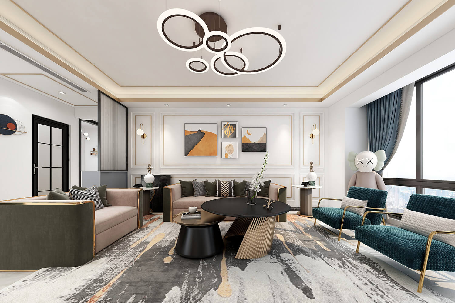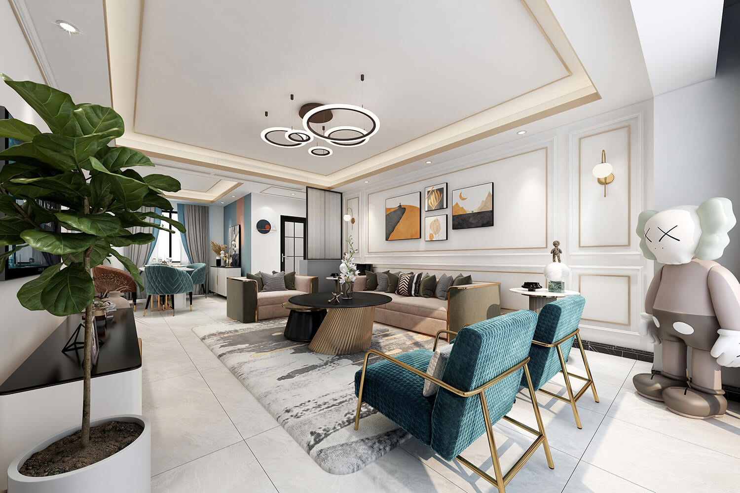 瀏覽量:392本案總面積118㎡,整體配色以白色為主色調(diào),用充滿清新氣息的綠與藍(lán)為空間帶來清爽感覺,點(diǎn)亮空間視覺色彩感知,展現(xiàn)別具一格的視覺感,華麗的金屬色澤增添輕奢質(zhì)感。