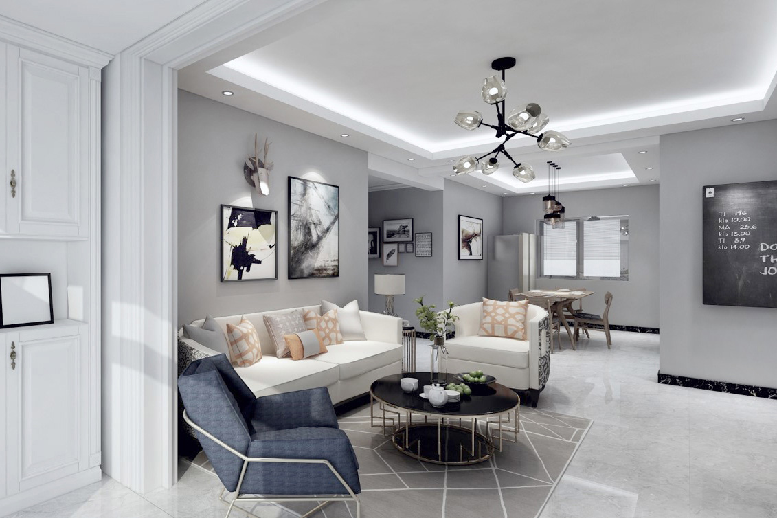 瀏覽量:315房屋整體主色調(diào):黑白灰,踏入房門首先看到的是灰色墻面和黑色的矮柜形成鮮明的對(duì)比。給人的第一感覺(jué)有浪漫、時(shí)尚,卻不失美式中特有的奢華。墻面以灰色為主,地板以深灰色為主色。整體空間的動(dòng)線非常流暢,給人很舒服的感覺(jué)。客廳整體設(shè)計(jì)偏美式,硬裝選色大氣,配以布藝沙發(fā)的軟裝,硬裝配以現(xiàn)代風(fēng)格的電視背景墻,整體給人的感覺(jué)穩(wěn)重而簡(jiǎn)潔。美式的顏色不可過(guò)于濃重,在混搭風(fēng)格中,只可點(diǎn)綴,它的作用是調(diào)節(jié)空間整體的氣氛。