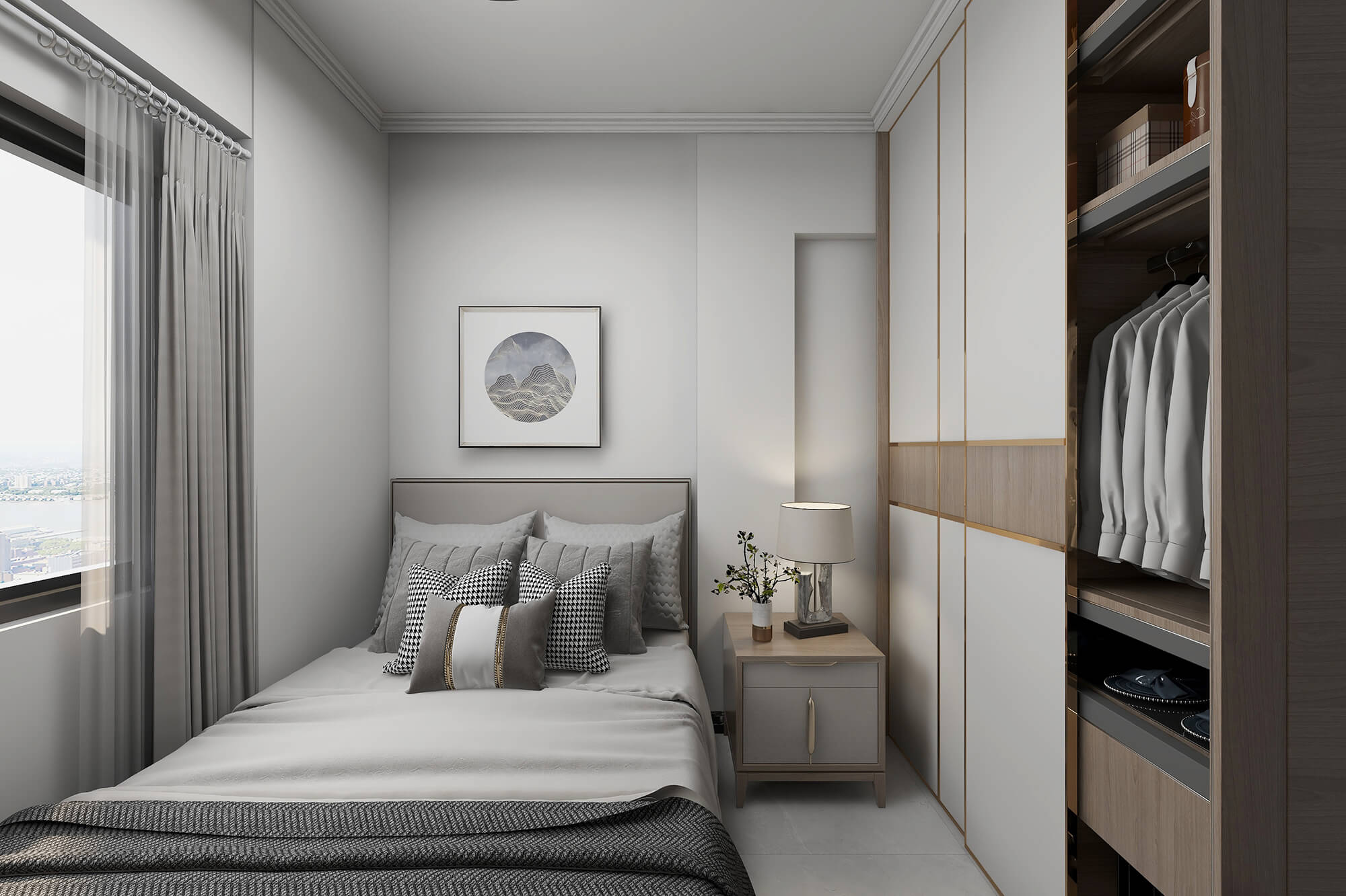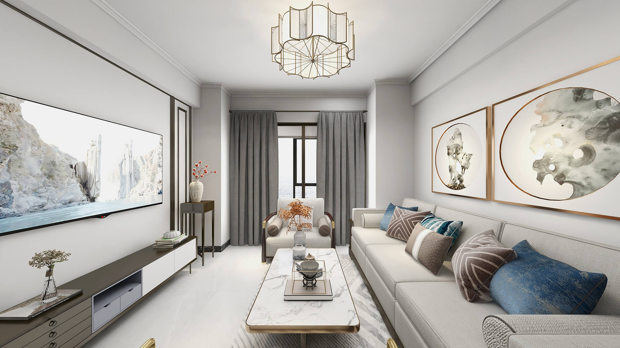 瀏覽量:574本案戶型為:3房2廳2衛(wèi),總面積72㎡。本案風(fēng)格為新中式,在空間中以淺灰色為主色調(diào),將中式元素以生活的面目表達(dá)出來(lái)。在造型、擺件等上面采用一些中式手法,為空間增添高雅秀逸的意境美,使得整體空間賞心悅目,并充滿韻味。