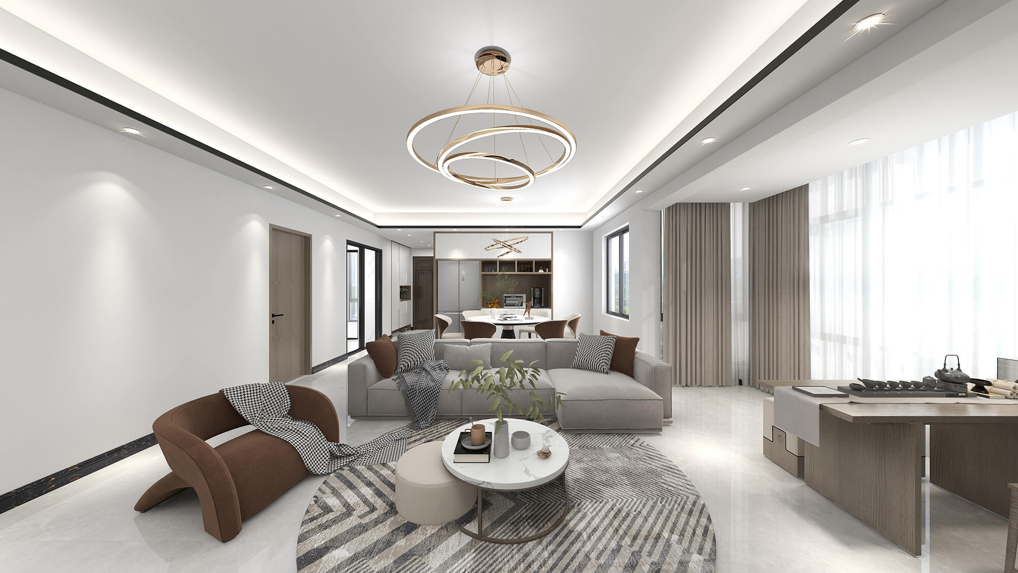 瀏覽量:971此案例為131㎡的現(xiàn)代簡(jiǎn)約風(fēng)格,設(shè)計(jì)師充分考慮了內(nèi)外環(huán)境的關(guān)系,引景入室,引光入室,寬敞明朗的平面在開闊的落地窗的加持下,延伸出美妙的生活場(chǎng)景體驗(yàn)。