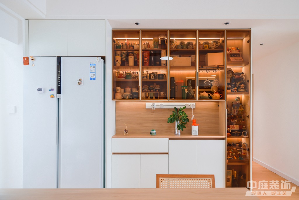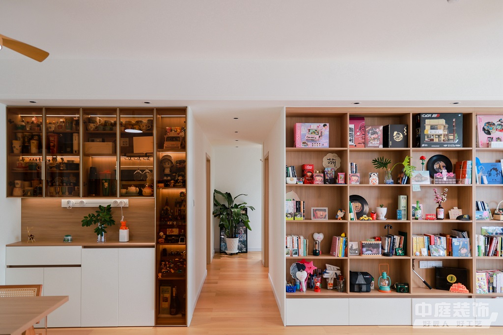 瀏覽量:898仿佛步入了一個自然與簡約交織的溫馨空間。淺色調(diào)的木質(zhì)地板營造出一種質(zhì)樸而不失高雅的氛圍??蛷d中央,去客廳化的設(shè)計,一排原木色到頂書架擺滿精心挑選的物件和書籍,一進門就能感受家的溫暖。
