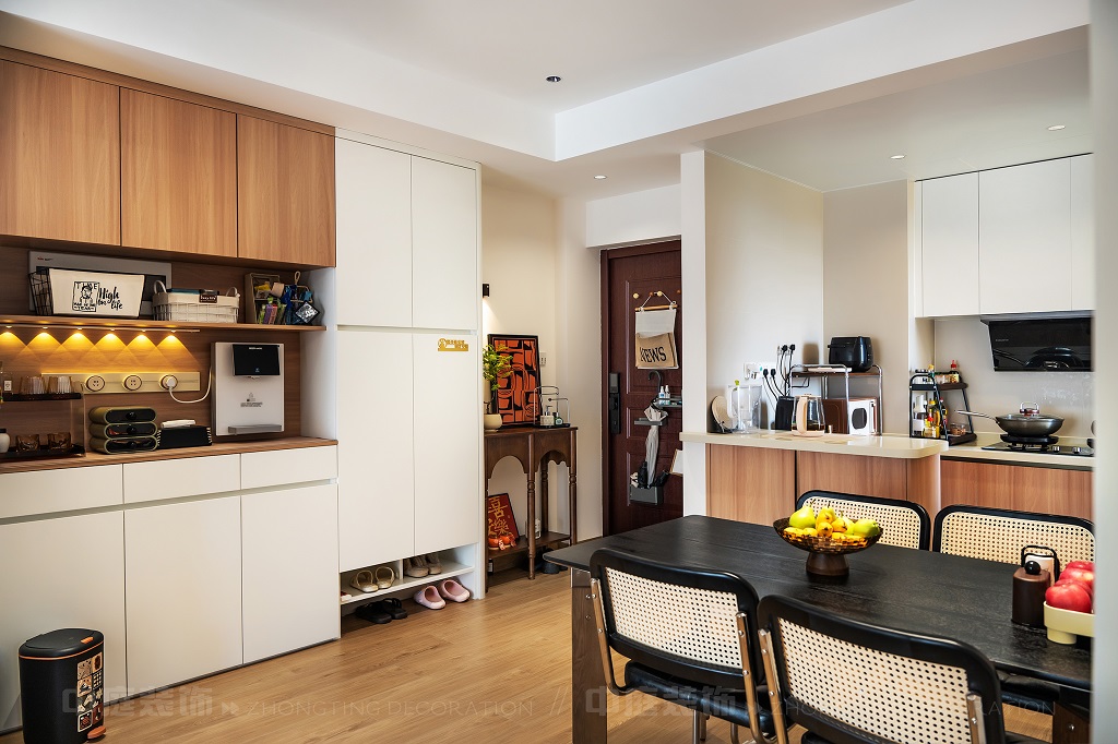 瀏覽量:139每一處細(xì)節(jié),都是他們對(duì)“把日子過(guò)成詩(shī),讓家裝滿故事”的詮釋。以原木的溫潤(rùn)、白調(diào)的清爽為基底,在玄關(guān)處嵌入復(fù)古邊幾,擺上藝術(shù)感的裝飾畫(huà),仿佛時(shí)光在此打了個(gè)溫柔的結(jié);餐廚區(qū)的咖啡角裝滿對(duì)生活的小確幸,與開(kāi)放式廚房的煙火氣交融,是晨起的咖啡香與深夜的飯菜香的浪漫邂逅;客廳里,黑色皮沙發(fā)搭配復(fù)古風(fēng)抱枕,一旁的藝術(shù)綠植蜿蜒生長(zhǎng),就像主人對(duì)生活的熱愛(ài)肆意又熱烈。