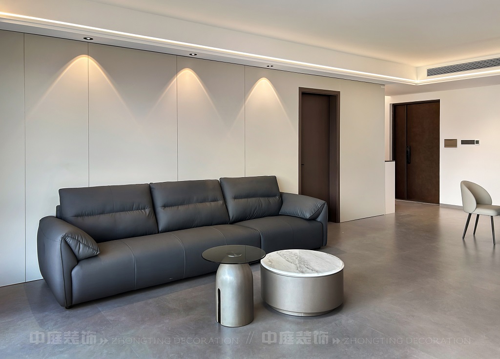 瀏覽量:198客廳電視背景墻的山水畫面,既具現(xiàn)代設計的視覺沖擊力,又蘊含傳統(tǒng)山水意境。材質(zhì)上選用簡約的板材、大理石與金屬元素,搭配簡潔的家具造型,呈現(xiàn)出低調(diào)的奢華感。燈光設計以線性燈和嵌入式燈具為主,通過柔和的光影強化空間層次。同時,在簡約的布局中融入對生活細節(jié)的考量,讓整個空間既符合現(xiàn)代都市人的審美需求,又傳遞出含蓄的東方美學意境,實現(xiàn)了功能性與藝術性的平衡,打造出舒適且富有格調(diào)的居住環(huán)境。