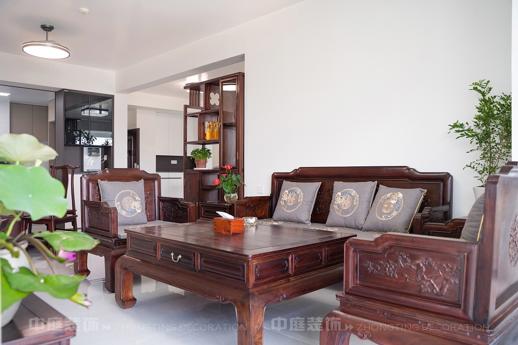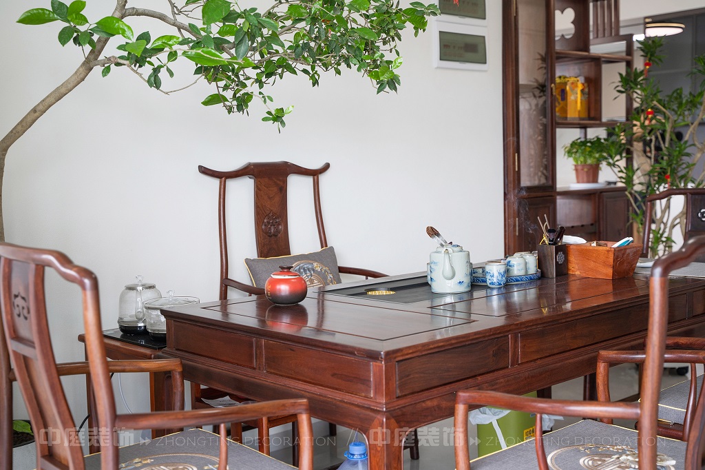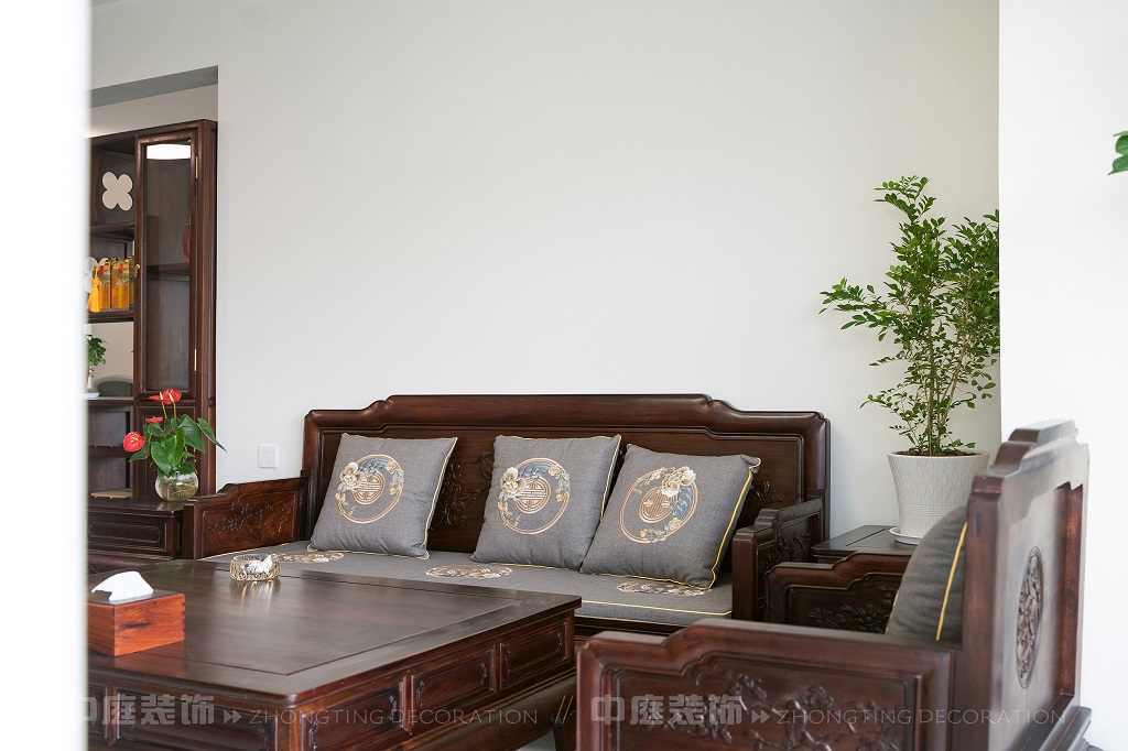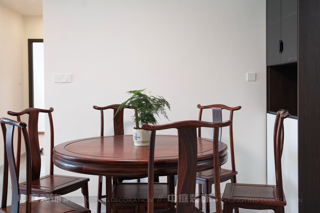 瀏覽量:192全屋以深色實木家具為主,雕花工藝精致細膩,盡顯中式家具的古樸質(zhì)感。搭配帶有傳統(tǒng)紋樣的抱枕,在細節(jié)處傳遞中式美學??臻g中綠植點綴其間,與木質(zhì)家具相得益彰,營造出自然清新的氛圍。無論是客廳的沙發(fā)組合,還是茶室的茶桌茶具,亦或是餐廳的圓桌設(shè)計,都在簡約的現(xiàn)代空間里,勾勒出中式家居的典雅與詩意。