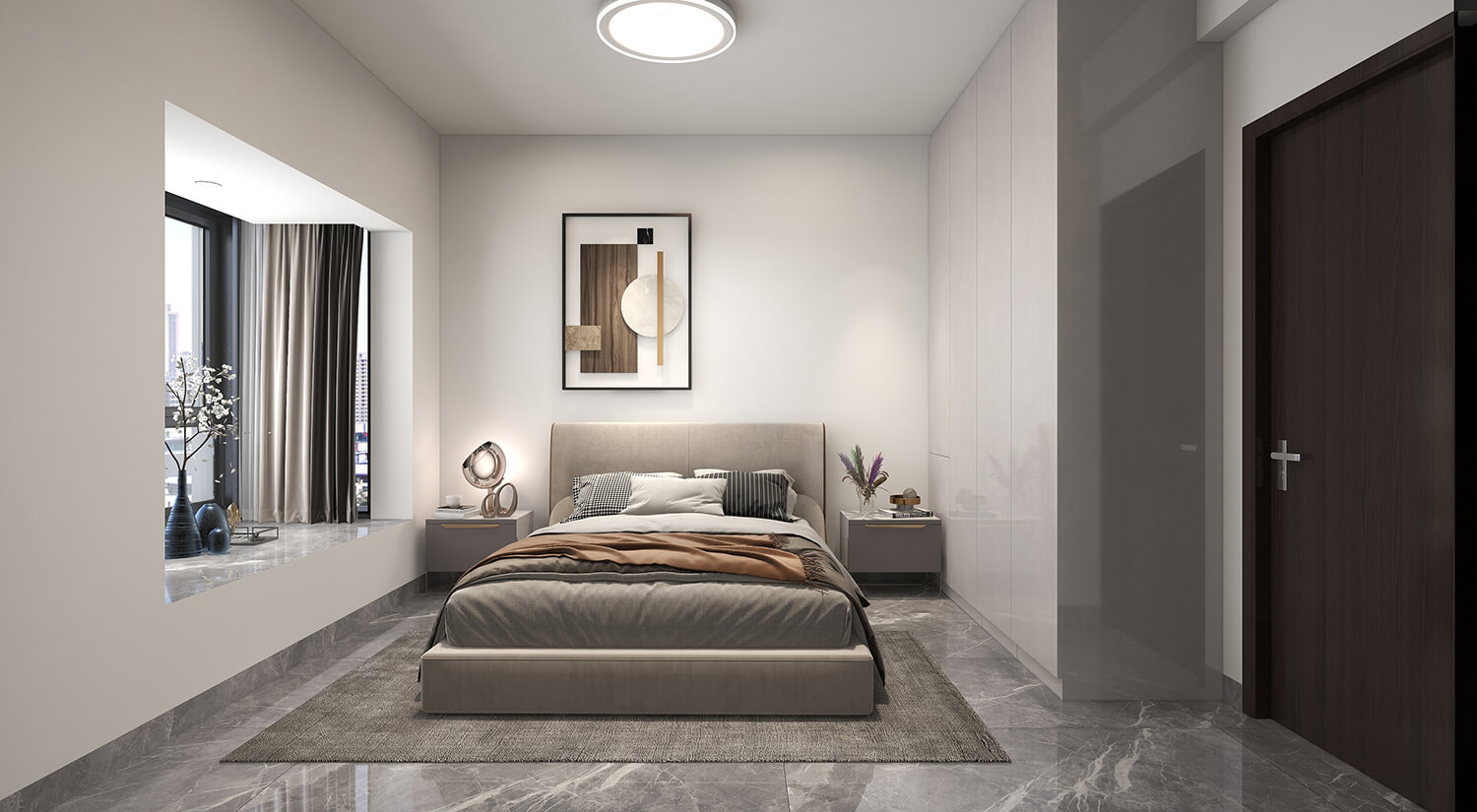 本案例戶型為:3房1廳1衛(wèi),總面積130㎡。整體家具通常采用簡約的線條和材料。家具的色調(diào)以灰色、米色、白色為主,這些顏色可以營造出一個舒適和溫馨的氛圍。