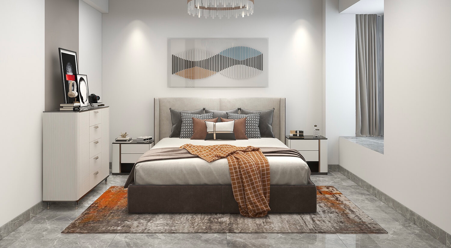本案例戶型為:6房2廳3衛(wèi),總面積240㎡。設(shè)計師精于對細節(jié)的追求,整體風(fēng)格強調(diào)功能性和美感的結(jié)合,通過簡單明了的設(shè)計和精致細致的細節(jié)呈現(xiàn)出現(xiàn)代感和高品質(zhì)的生活態(tài)度。