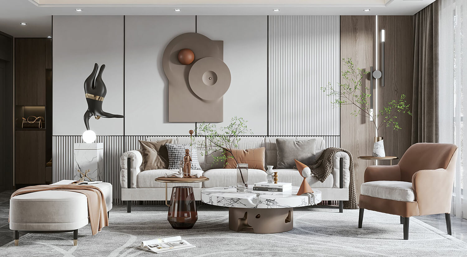 瀏覽量:564顏色搭配也是現(xiàn)代輕奢風(fēng)格的重要部分。通常使用大面積的中性色調(diào),如白色、灰色、米色等,這些顏色可以使空間更加明亮、舒適。同時(shí),也會加入少量的金屬色調(diào)和珠光色,如金色、銀色、香檳色等,讓空間更具奢華感。