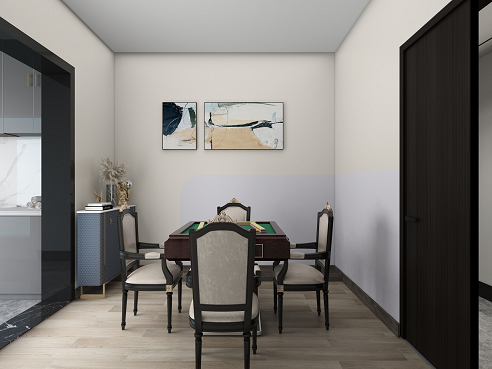 客廳、餐廳廚房是室內(nèi)空間里非常重要的區(qū)域,同時(shí)也占據(jù)了室內(nèi)的大部分空間。業(yè)主想要一個(gè)舒適大氣的客餐廳,希望設(shè)計(jì)師能在作品空間中展現(xiàn)的靈活性和延伸感,通過(guò)應(yīng)用線(xiàn)條的變化,色彩變化及不同筆法表現(xiàn)畫(huà)面的虛實(shí)與美感。女主人對(duì)麻將情有獨(dú)鐘,想擁有自己的麻將室。