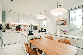 家里人都很喜歡烹飪,廚房是家庭的核心,經(jīng)常做飯洗碗時都會有兩個人以上一起操作。喜歡原木的東西,想要大的公共空間,和家庭與喜好相互融合。
