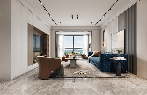 空間大面積描繪溫暖的棕灰色調(diào),將優(yōu)雅而內(nèi)斂的視覺觀感散布于每一個細(xì)節(jié)之中。設(shè)計師嘗試以一種接近生活本質(zhì)的視角觀察點(diǎn)滴日常的豐富性,將生活主場景面向自然景色,創(chuàng)造開闊明亮、安靜舒適的居住氛圍,讓每一位居住其中的人與自然對話,感受自在。
