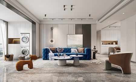使用更親近自然的棉、麻、木搭配黑、棕、白、灰色,在裝飾上極度的克制,給人高品質(zhì),舒服的感受。削弱復(fù)雜造型和色彩對人情緒的影響,反而產(chǎn)生了治愈的力量。克萊因藍(lán)沙發(fā)的點(diǎn)睛之筆,顯得整個空間更加自信,給人傳遞高級的視覺感受。